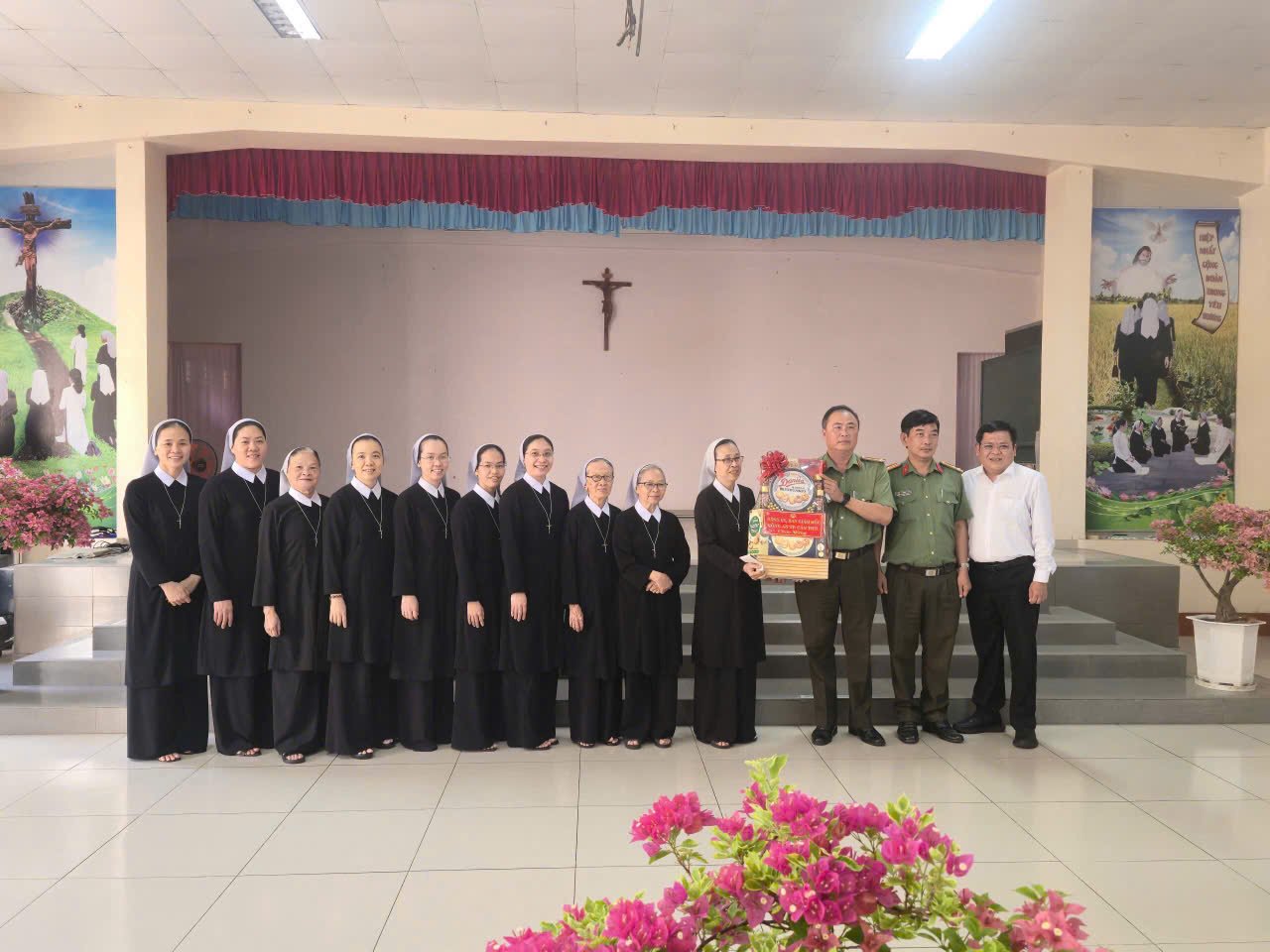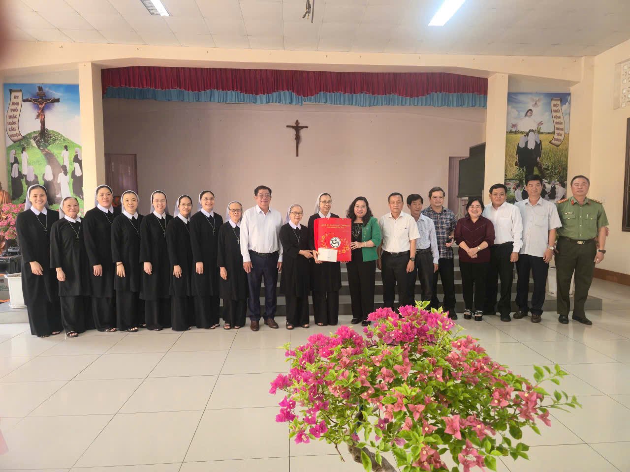 Sáng ngày 16/4, tại hội trường Hội dòng Mến Thánh Giá Cần Thơ, Chị em trong hội dòng hân hạnh đón tiếp quý vị đại diện Đảng ủy, HĐND, UBND, UBMTTQ phường Sóc Trăng; quý lãnh đạo Thành ủy, HĐND, UBND, UBMTTQVN Thành phố Cần Thơ; cùng quý vị trong Đảng ủy, Ban Giám đốc Công an Thành phố Cần Thơ đến thăm và chúc mừng Đại lễ Phục Sinh.