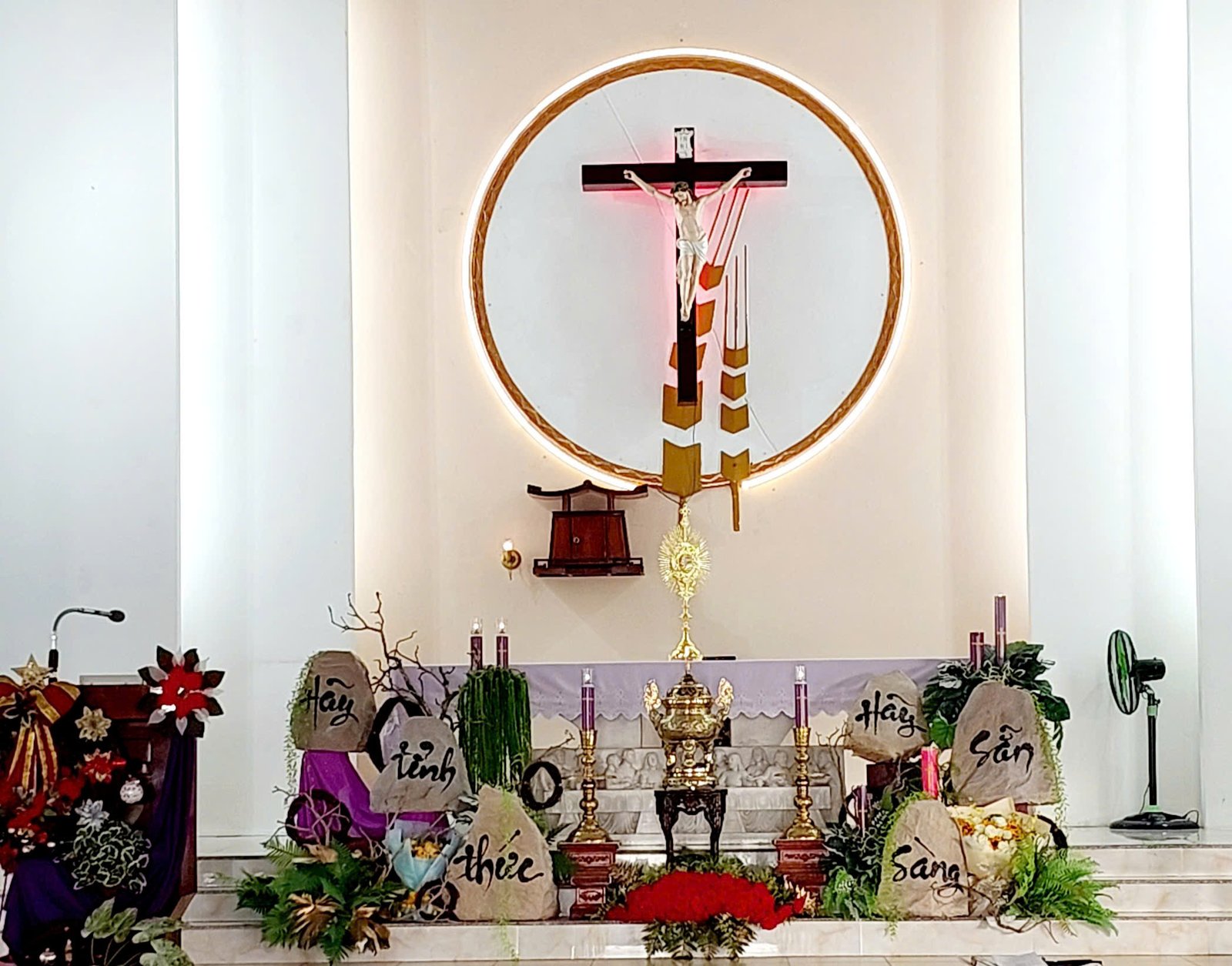 Sự bài trí gói trọn tâm tình hân hoan và cảm thức về một Mùa Vọng như chảy tràn trong tâm tình của mỗi chị em khi bước vào Thánh Đường An Bình – Rau Răm, kéo chị em vào một tâm tình cầu nguyện sốt sắng và ý thức.